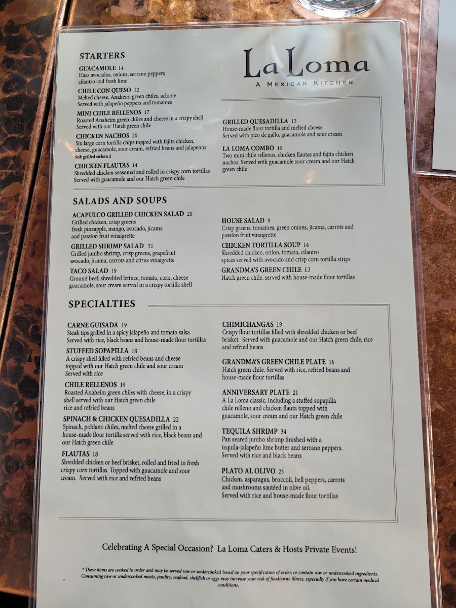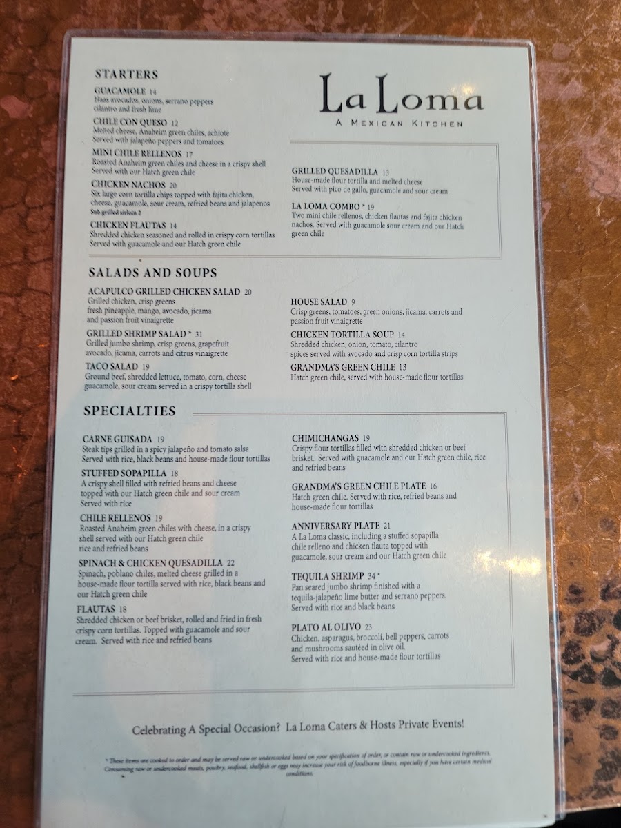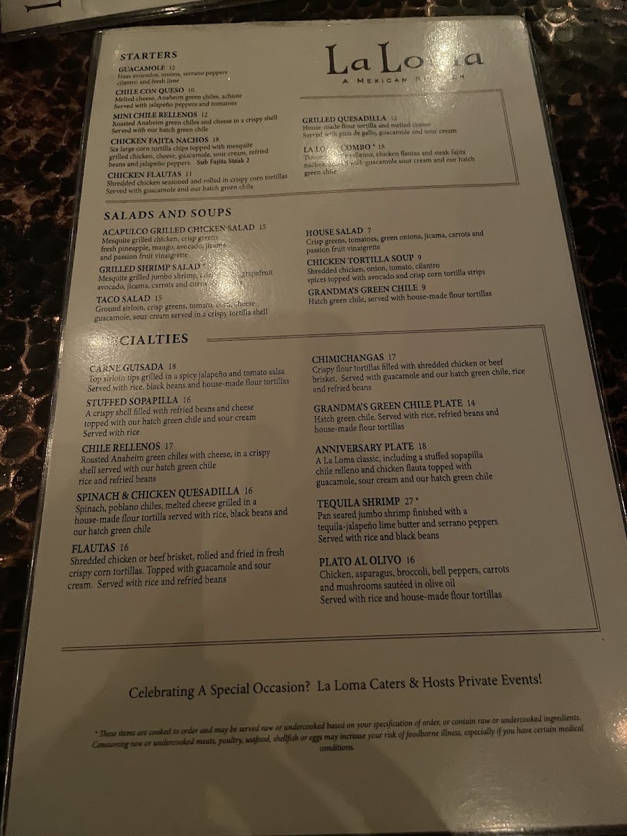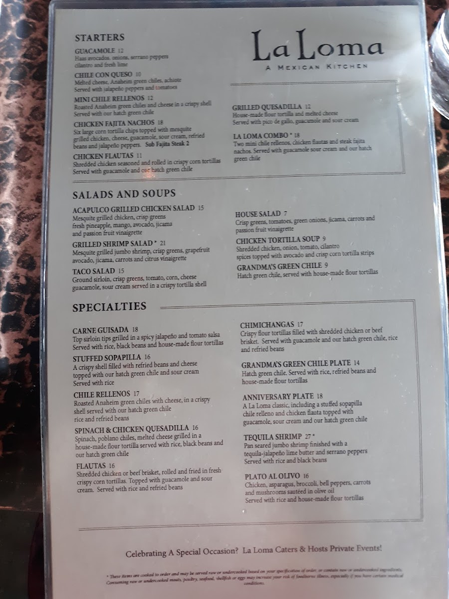 I had a 2nd Date with my Lady and La Loma IS her favorite Mex restaurant and this was my FIRST TIME dining here, and I believe the Red Ranchero Enchalada Sauce is the BEST I have ever had; and THAT is saying something since I had several authentic Mexican places I enjoyed while living in Arizona. Great Views from both Bars, we were at the Back Bar, service Nick and Patrick TOP NOTCH...PJ and J
